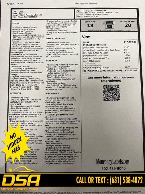 2011 BMW Z4 2dr Roadster sDrive30i, available for sale in Commack, New York | DSA Motor Sports Corp. Commack, New York