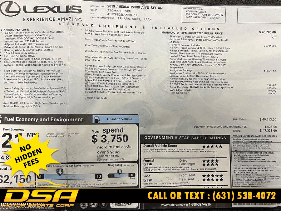 2019 Lexus IS IS 300 F SPORT AWD, available for sale in Commack, New York | DSA Motor Sports Corp. Commack, New York